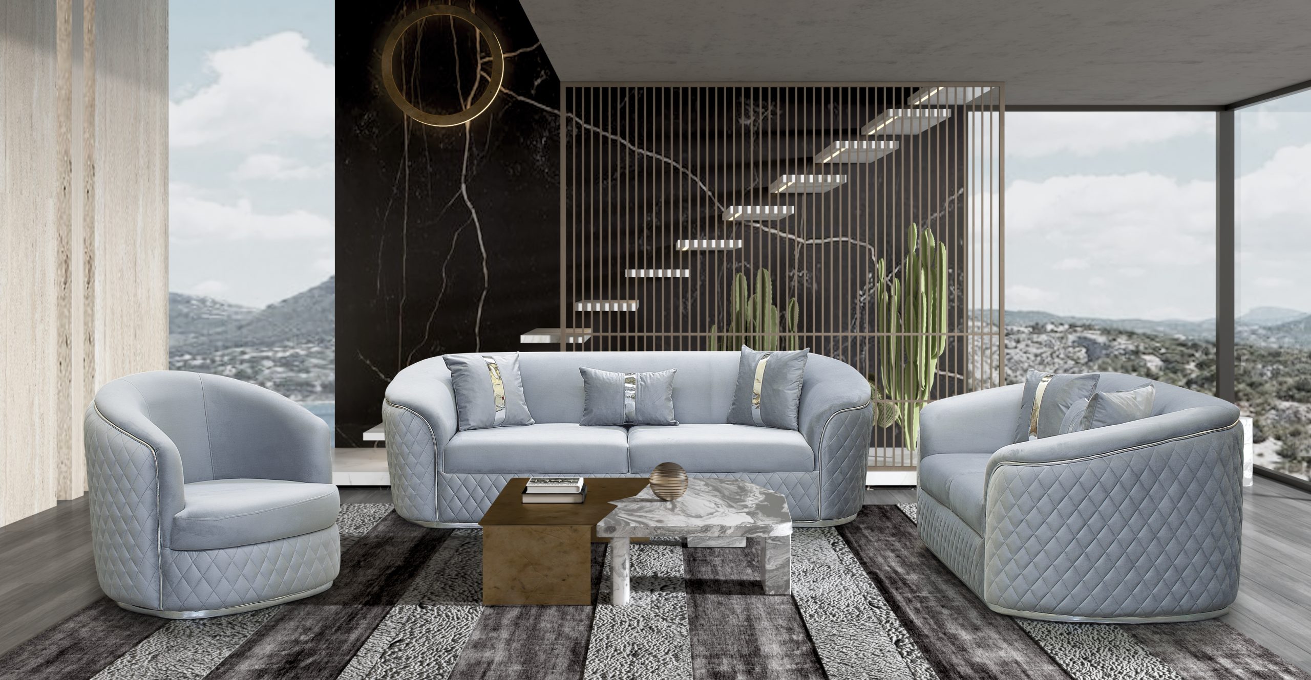 Colecția Bevelly aduce un aer de rafinament și opulență în livingul tău, fiind creată pentru a satisface cele mai înalte standarde de estetică și confort. Fiecare piesă contribuie la crearea unui ansamblu armonios și sofisticat, inspirat de stilul de viață exclusivist.