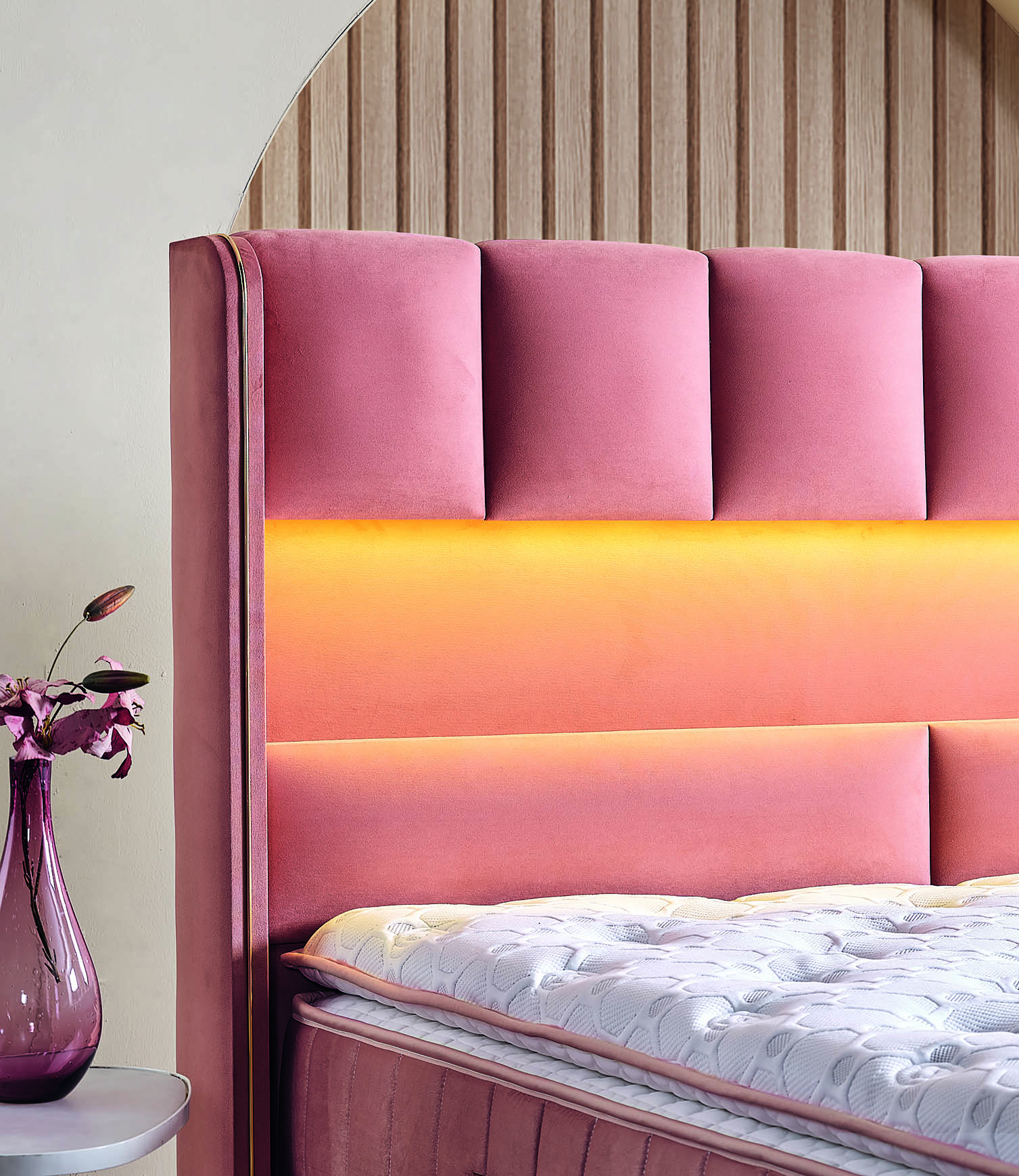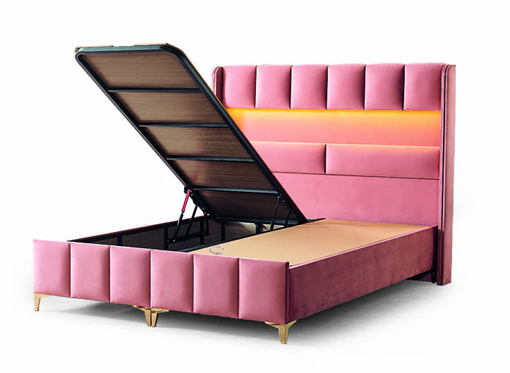 Pat catifea, saltea inclusă și sistem rabatabil pentru depozitare, DELUXE – Model Floransa