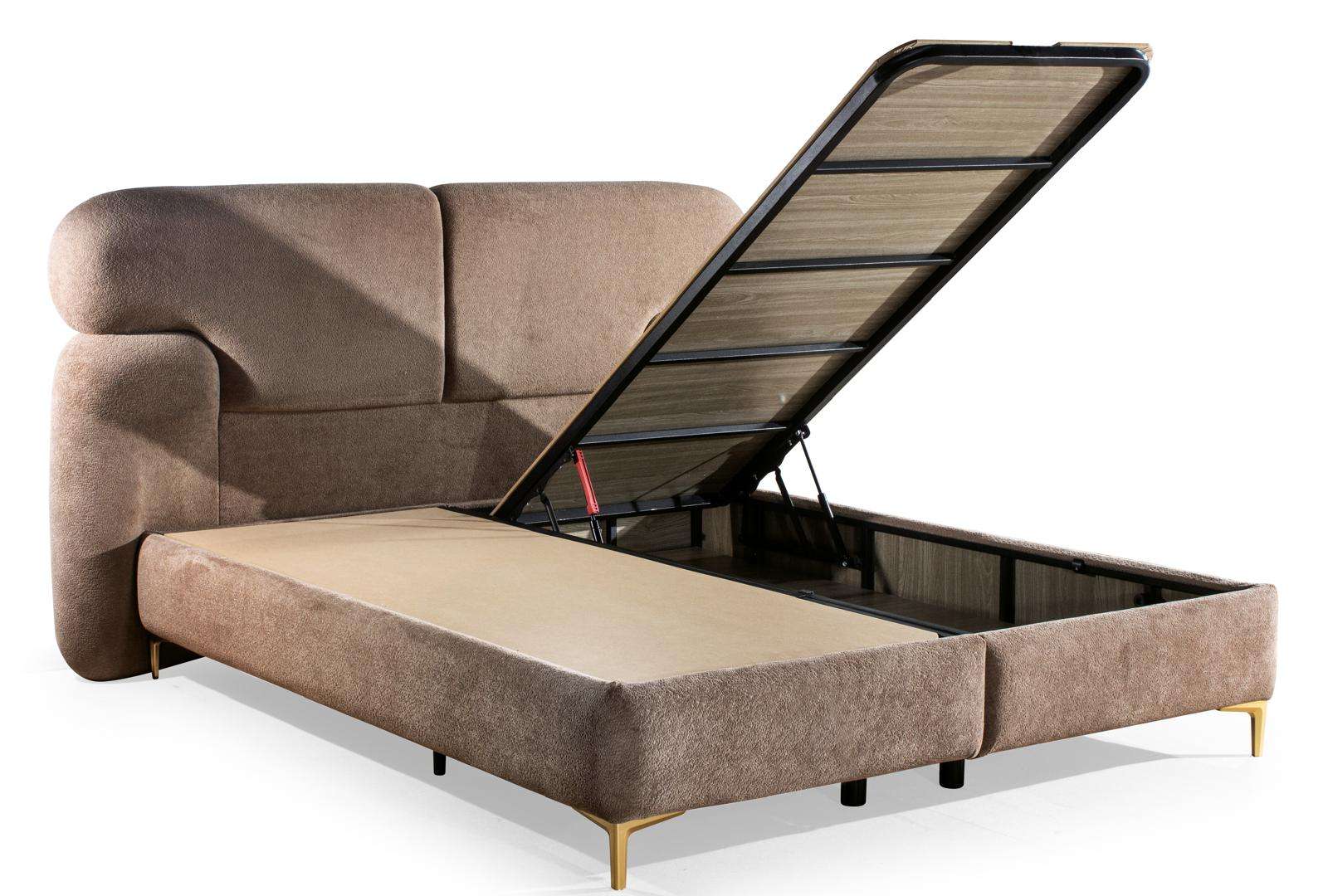Acest model este dotat cu ladă de depozitare spațioasă, accesibilă printr-un sistem de ridicare metalic rezistent, ideal pentru depozitarea lenjeriilor, pilotelor sau pernelor. Astfel, patul nu oferă doar confort, ci și o soluție practică pentru organizarea dormitorului.